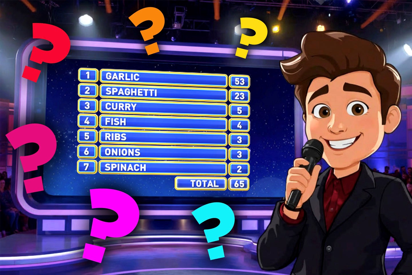 Wir haben 100 Menschen befragt … und jetzt fragen wir dich! Wir haben alltägliche Meinungen in heitere Quizfragen verwandelt - hier geht es nicht um Fakten, sondern um die Meinung der Mehrheit. Von Lieblingssnacks über peinliche Gewohnheiten bis hin zu globalen Trends und heimlichen Vergnügungen. Denke wie die Masse, um Punkte zu erzielen! Wenn du "Familien-Duell" kennst, dann weißt du, wie der Hase läuft. Diese Kategorie eignet sich für alle Altersgruppen und ist schnell, lustig und voller Überraschungen – denn manchmal sind die albernsten Antworten die beliebtesten.